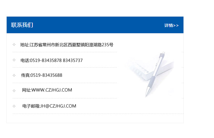 地址:常州市新北區友邦商務大廈1幢16、17層  電話:0519-85101652  傳真:0519-85112595  郵編:213022  網址:www.cz-jiayue_cn.sdbmxx.com  郵箱:xiajifengaa@163.com